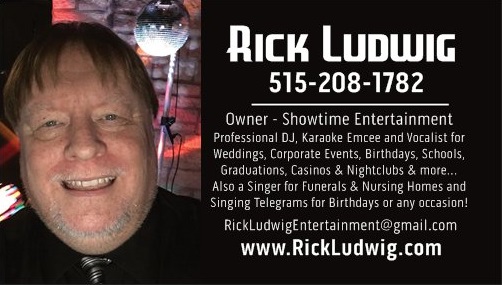 Rick has been DJing since 1985!!! Hire him for Weddings, Corporate Events, Graduations, Schools, Bars, Casinos and more!!! Call Today... (515) 208-1782 or email Rick Ludwig owns and operates Showtime Entertainment DJ & Karaoke Services of Des Moines, IA Please clink the link below to learn more about Showtime Entertainment... Go to Showtime Entertainment DJ Home Page ational, nationwide, america, usa, casino, clubs, bars, amazing, incredible, impersonator, mask, imitator, imitation, imitate, impersonate, concert, variety, artist, title, many, voice, voices, elvis presley, frank sinatra, dean martin, bobby darin, louis armstrong, roy orbison, buddy holly, frankie valli, four seasons, righteous brothers, beach boys, beatles, tokens, elton john, billy joel, neil diamond, jimmy buffett, bob seger, rock and roll, rock & roll, oldies, pop, rock, country, country & western, johnny cash, willie nelson, conway twitty, john denver, george strait, george jones, garth brooks, brooks & dunn, alan jackson, tim mcgraw, toby keith, lee greenwood |
